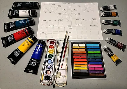 In this workshop we will explore blending colors in different mediums. Starting with a basic color wheel and expanding to blending techniques to create different shades, tones, and colors. Discover how to use just the 3 primary colors to create a variety of shades and progressing through secondary to tertiary colors, all the way to unique tones and colors such as eggplant, burgundy, lime, skin tones, etc. Find out what happens when white and black is used verses colors. Understanding opposite colors on the color wheel and creating warm and cool tones.